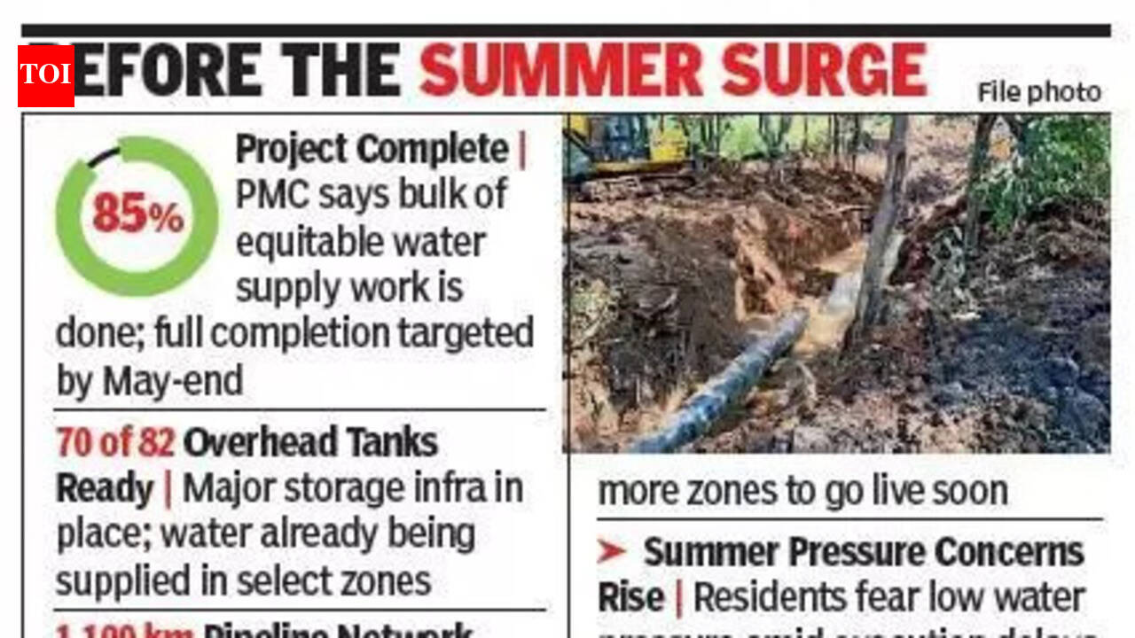 पुणे: नागरी संस्थेने म्हटले आहे की शहरातील समान पाणी पुरवठा प्रकल्पाचे सुमारे 85% काम पूर्ण झाले आहे आणि उर्वरित काम मे अखेरपर्यंत केले जाईल, जरी नागरिकांनी डिसेंबर 2025 च्या अंतिम मुदतीत विलंब झाल्याचे वर्णन केले आहे. पुणे महानगरपालिकेने (पीएमसी) सांगितले की, आत्तापर्यंत 82 ओव्हरहेड पाण्याच्या टाक्यांपैकी 70 टाक्या बांधल्या गेल्या आहेत आणि 1,200 किमी लांबीच्या वितरण लाईनच्या लक्ष्यित नेटवर्कपैकी सुमारे 1,100 किमी घातली गेली आहेत. मात्र, 30,000 स्वयंचलित वॉटर मीटर बसविण्याचे काम प्रलंबित राहिल्याने नागरिकांचा विरोध होत आहे. नवनिर्वाचित नगरसेवक लोकांना निर्णय स्वीकारण्यास प्रोत्साहित करण्यास मदत करू शकतात, असे प्रशासनाने म्हटले आहे.अपव्यय कमी करताना, पाण्याचा दाब आणि संपूर्ण शहरात वितरण वाढविण्याच्या उद्देशाने हा प्रकल्प राबविण्यात येत आहे. पीएमसी अधिकाऱ्यांनी सांगितले की, डिस्ट्रिब्युशन लाईन आणि ओव्हरहेड टँकचे मूलभूत काम पूर्ण झाल्यानंतर, वेगवेगळ्या झोनमध्ये टप्प्याटप्प्याने योजना अंमलात आणली जाईल. पाण्याच्या पाइपलाइनशी संबंधित सर्व पायाभूत कामे पूर्ण करण्यासाठी पुढील दोन महिने महत्त्वाचे आहेत, असे ते म्हणाले.नागरी पाणीपुरवठा विभागाच्या एका वरिष्ठ अधिकाऱ्याने सांगितले की, “प्रकल्पासाठी शहरातील 140 झोन ओळखले गेले आहेत. 40 झोनमधील कामे यशस्वीरित्या पूर्ण झाली आहेत. आम्ही या भागात नव्याने बांधलेल्या ओव्हरहेड टाक्यांमधून पाणीपुरवठा करण्यास सुरुवात केली आहे. पुढील दोन महिन्यांत आणखी झोनमध्ये सुविधा कार्यान्वित होतील.”दरम्यान, विविध परिसरातील रहिवाशांनी या प्रकल्पाच्या परिणामाबद्दल भीती व्यक्त केली आहे. त्याच्या यशाचा अभ्यास करण्यासाठी प्रशासनाने लवकरात लवकर त्याची अंमलबजावणी सुरू करावी, असे त्यांनी म्हटले आहे. हडपसरचे रहिवासी अरुण गाडगीळ म्हणाले, “प्रकल्पाची गती संथगतीने सुरू आहे. नवीन ओव्हरहेड टाक्यांमधून पुरवठा सुरू व्हायचा आहे. उन्हाळा सुरू असून पाण्याचा दाब कमी होण्याची शक्यता आहे. प्रशासनाने हे काम लवकर पूर्ण करायला हवे होते.” पीएमसीच्या सूत्रांनी सांगितले की, विविध सरकारी विभागांकडून ना हरकत प्रमाणपत्रे मिळण्यास होणारा विलंब हे संथ प्रगतीचे प्रमुख कारण आहे. प्रकल्पाअंतर्गत उर्वरित कामे पूर्ण करण्यासाठी प्रशासनाने रस्ते खोदणे आणि वाहतूक वळवण्याची परवानगी मागितली आहे.